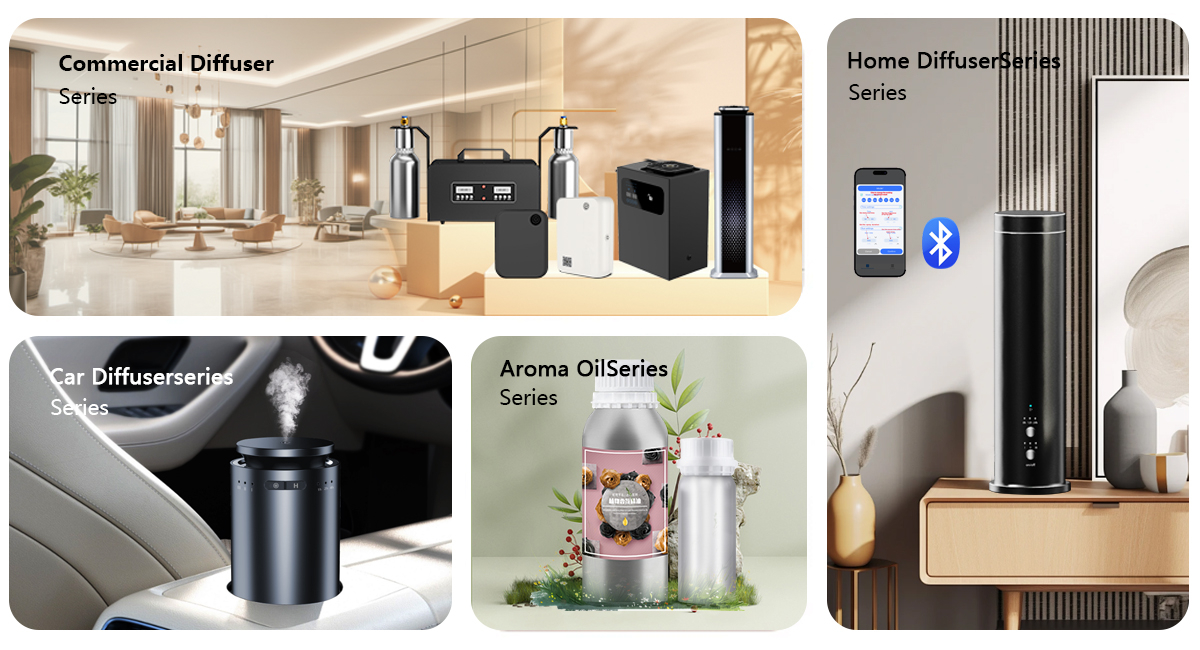 Main categories: Home Aroma Diffuser/Commerical Scent Diffuser, Car Aroma Diffuser, Essential Oil